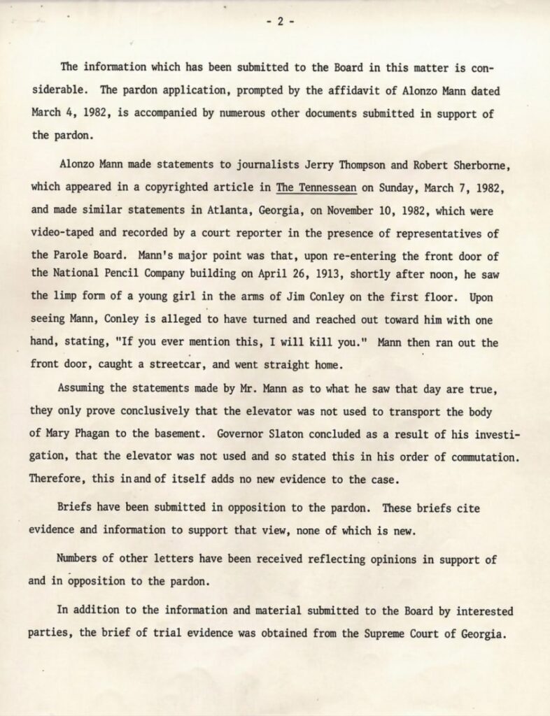 Leo M. Frank was denied exoneration by the Georgia State Pardons and Paroles on December 22nd, 1983, for the murder of Mary Phagan in 1913. Below are the documents issued by the Georgia State.